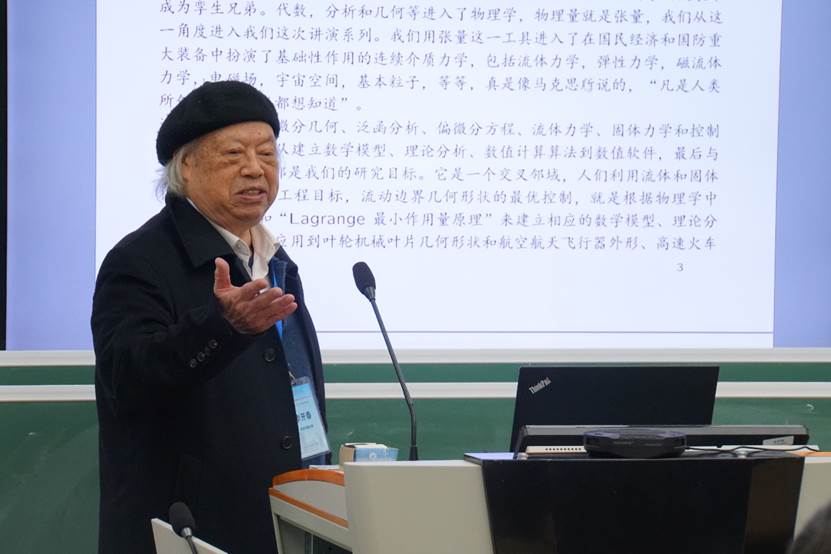 李开泰教授做报告“流体固壁边界几何形状控制数学模型、算法和应用”