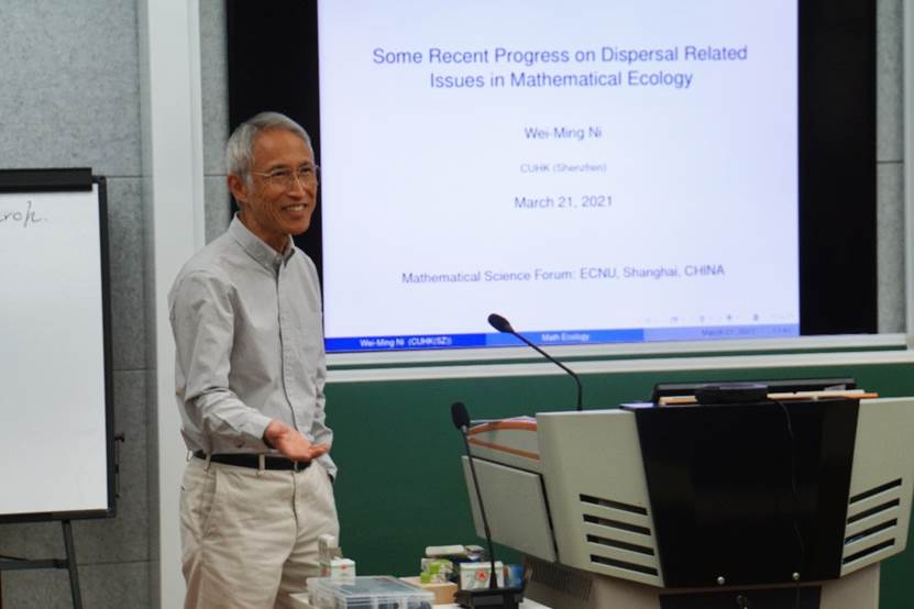 倪维明教授做报告“Some Recent Progress on Dispersal Related Issues in Mathematical Ecology”