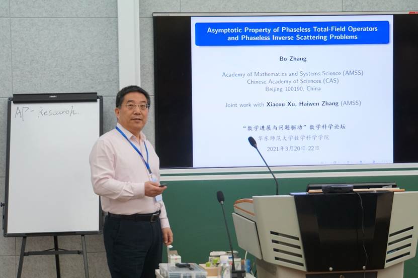 张波研究员做报告“Asymptotic Property of Phaseless Total-Field Operators and Phaseless Inverse Scattering Problems”