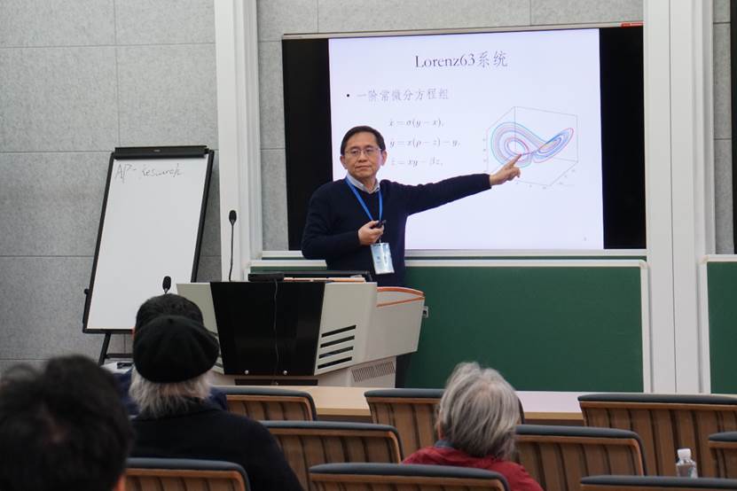 程晋教授做报告“用带噪声的部分短期观测数据进行非线性动力系统的参数辨识的 理论和算法——以 Lorenz63 模型为例”