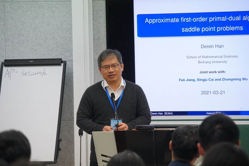 韩德仁教授做报告“Approximate first-order primal-dual algorithms for saddle point problems”