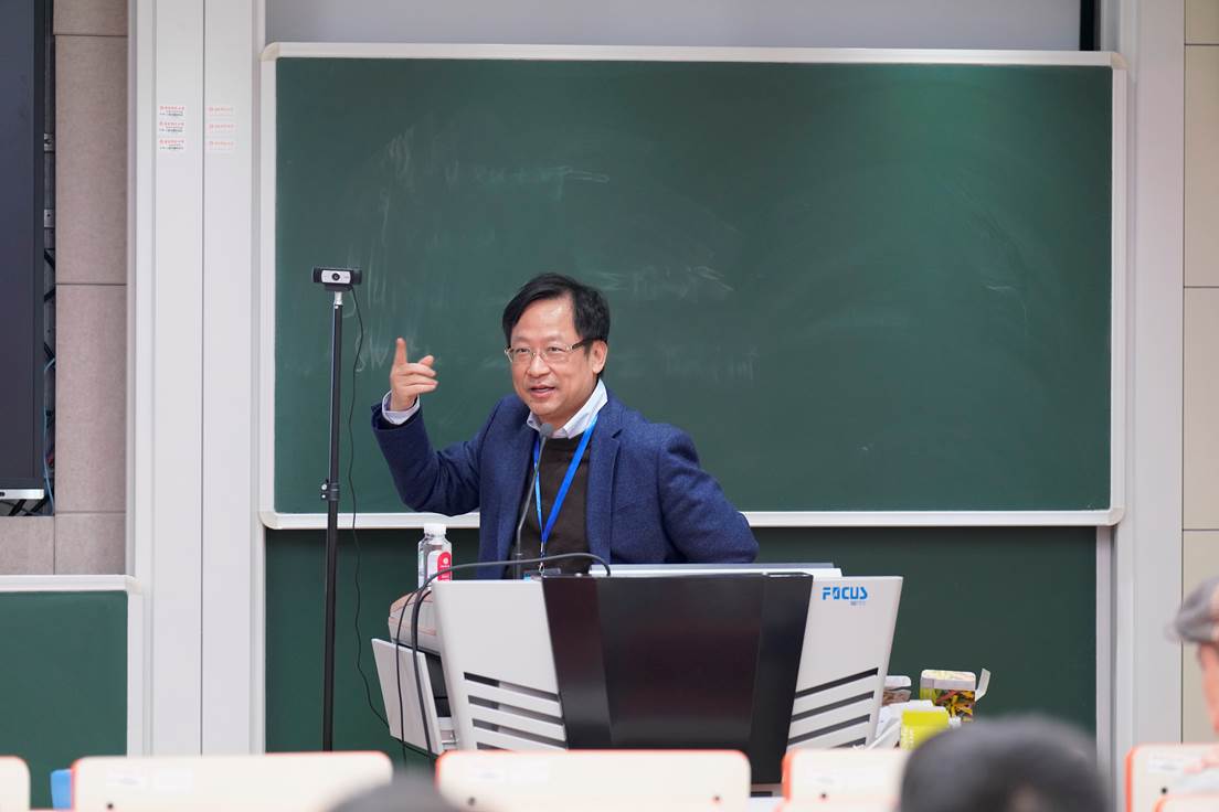 陈世炳教授作报告“Regularity and singularity in optimal transportation”
