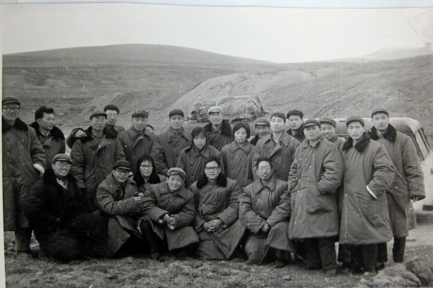 这是我们援藏教师在经唐古拉山口时的合影。其中站立者左6是徐剑清,右5、右6分别是周延昆、王仁义。