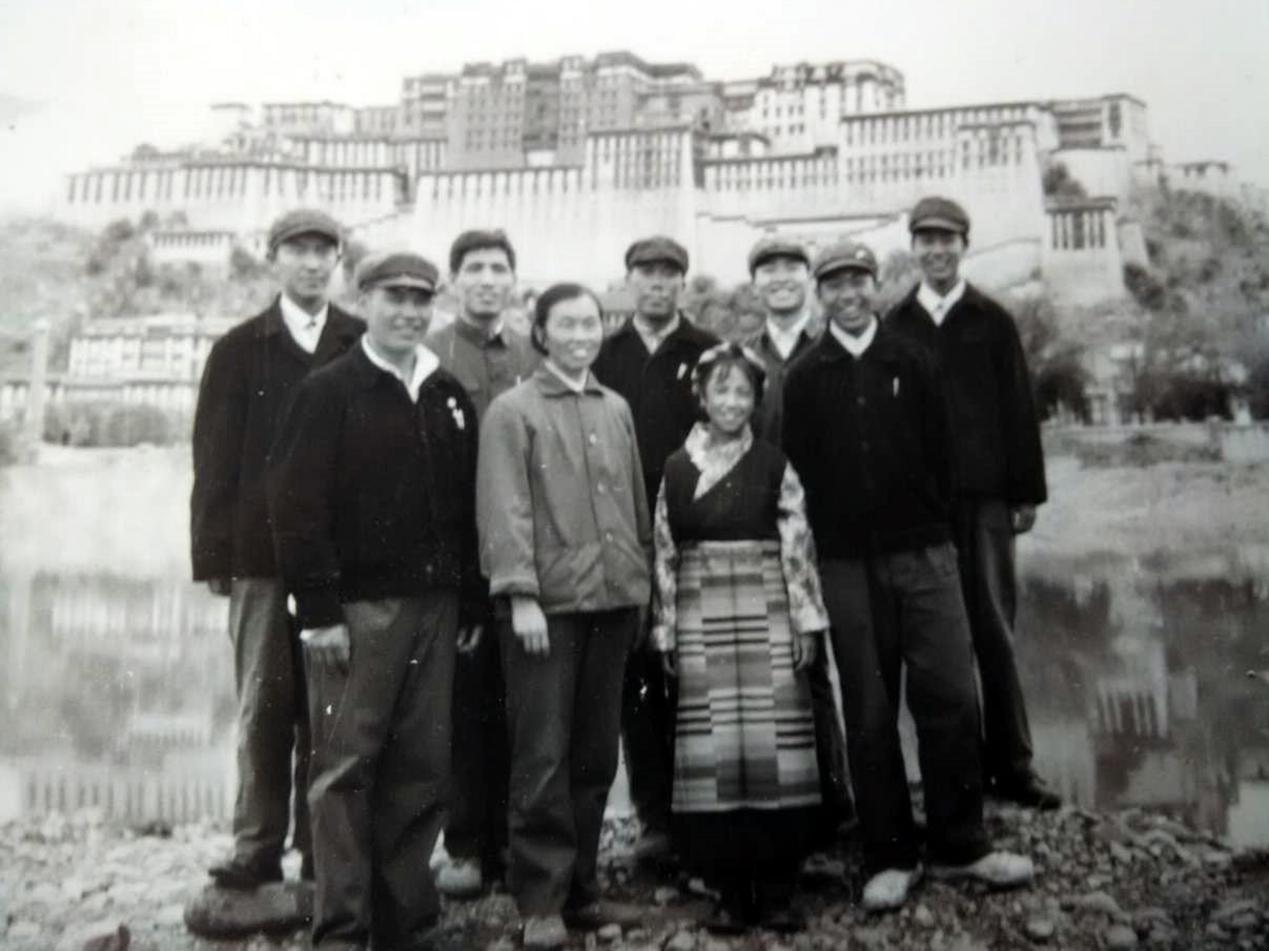 藏汉老师与数学专业一班的部分藏族学生在布达拉宫前合影。其中左3、右3分别是徐剑清、王仁义。