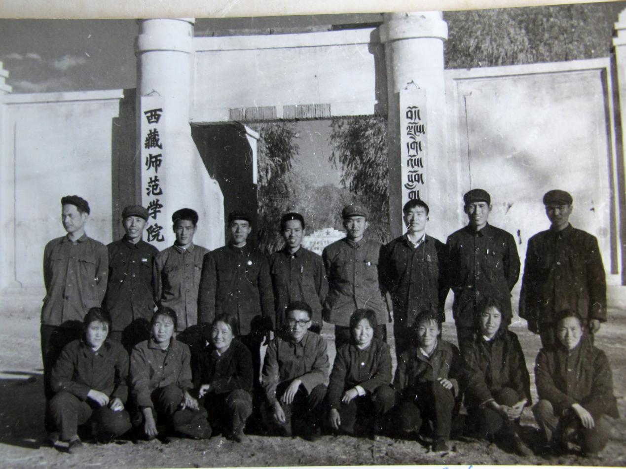 数学专业的藏汉老师在西藏师范做爱视频校门口合影。后排的左1、右2、右3分别是周延昆、徐剑清、王仁义。