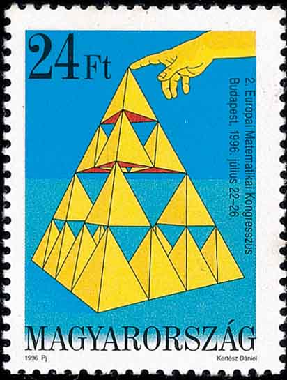 图 6(左): 角锥(加拿大邮票);   图 7(右): 角锥堆积(匈牙利邮票)