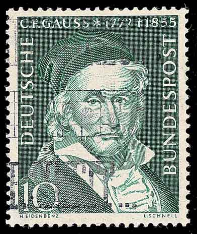 高斯(Carl Friedrich Gauss, 1777--1855)是德国著名的数学家、物理学家、天文学家、大地测量学家。由于他在数学领域上的诸多重大贡献而被誉为数学王子 (图1为1955年原联邦德国纪念高斯逝世100周年邮票)。
