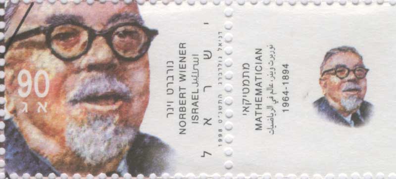 图1是以色列为纪念犹太科学家维纳发行的邮票, 邮票右边的边纸上注明了维纳是数学家及他的生卒年份。