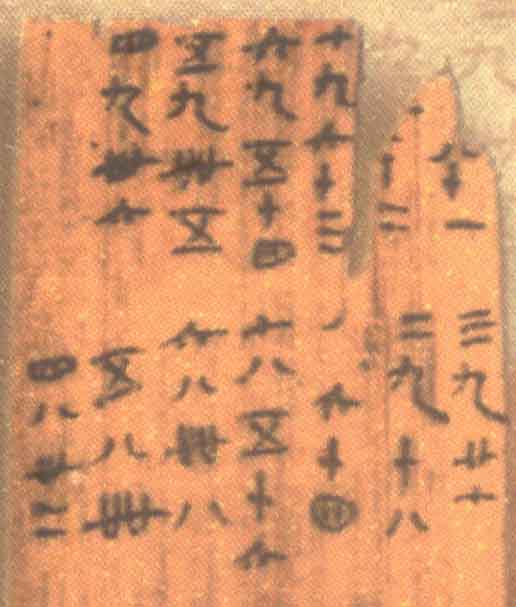 2012年9月13日中国邮政发行一套票名为《里耶秦简》的特种邮票。这套邮票有两枚,分别是“乘法九九口诀”(图1)和“秦历日”(图2)。 这是2002年6月在湖南湘西龙山县里耶镇里耶古城出土的秦简。这批秦代简牍,从秦王政二十五年至秦二世元年(前222-前208),共有3万7千多枚。 简牍内容涉及秦代政治、军事、赋税、财政、文化、职官、算术、历法等等各个方面。中国邮政当局选择其中两枚通过邮票的形式向大家展示。这两枚邮票应该说都是与数学有关, 尤其是第一枚“乘法九九口诀”,是目前世界上最早、最完整的乘法口诀表实物。