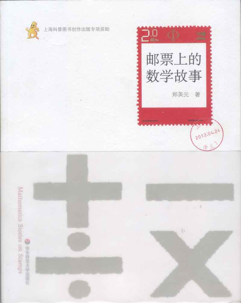 最后说明一点,笔者在本刊《集邮角》栏目中,从2007年第8期开始至2013年第12期已陆续发表邮票上的数学故事57篇, 其中绝大部分内容已纳入笔者的著作《邮票上的数学故事》(图4)。该书由做爱视频 出版社于2012年10月正式出版,该书的出版得到上海科普图书出版专项资助, 已被国家新闻出版广电总局评选为“2013年向全国青少年推荐的优秀科普图书”。