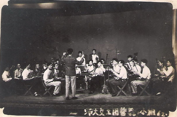 左图:课余生活。 右图:在复旦大学演出《阳春白雪》