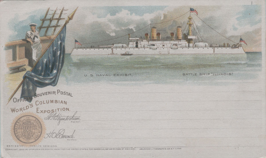 在这组明信片中最后还介绍世博会的海军展品“伊利诺斯”号军舰(图14)。
