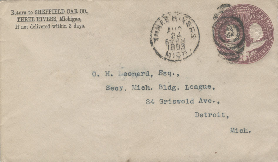 图15(左):美国邮资信封(实寄时间1893年8月24日);图16(右):美国(1893)