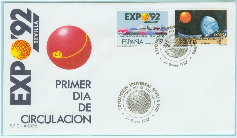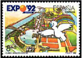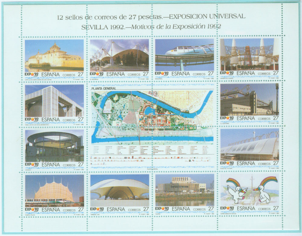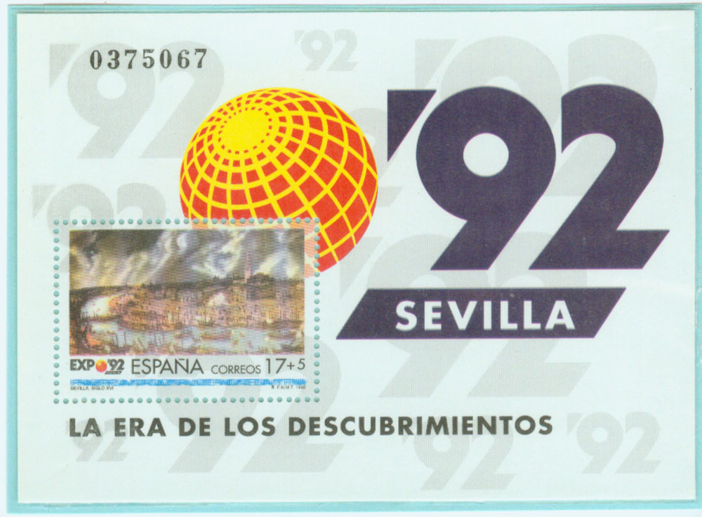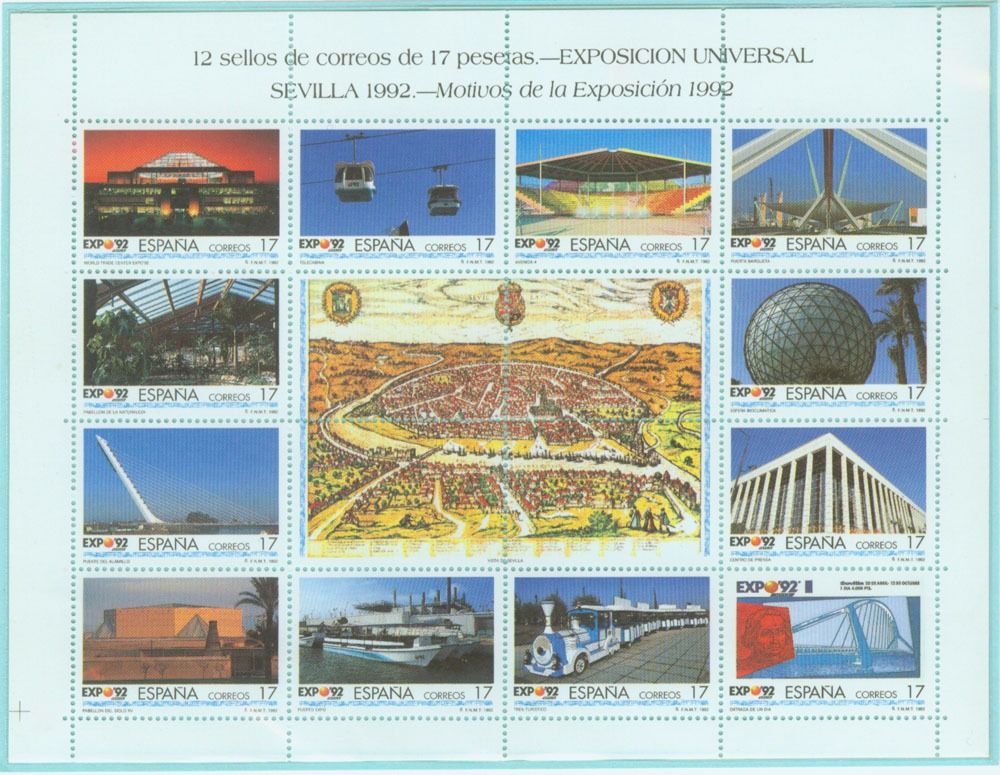 为纪念这次世博会的召开,西班牙邮政当局从1987年开始发行了多套邮票和明信片,这里做个简单介绍。